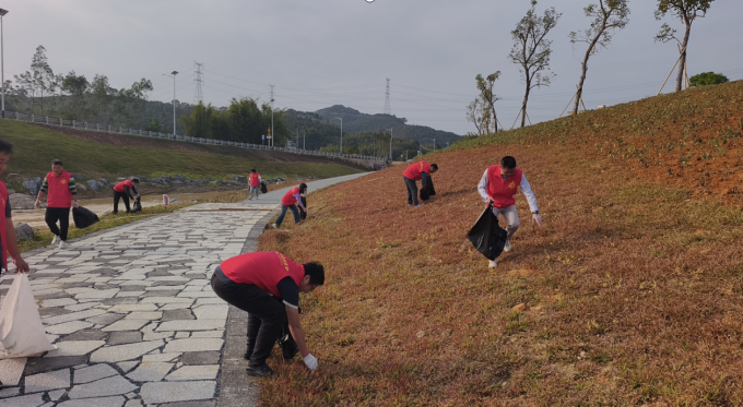 活動(dòng)中,黨員干部們身著紅色志愿服,沿河岸有序開(kāi)展清撿工作。大家不怕臟、不怕累,俯身細(xì)致翻檢草叢、河岸、親水平臺(tái)等角落,將散落的塑料瓶、食品包裝袋、枯枝落葉等各類廢棄雜物一一拾起,并按要求進(jìn)行分類裝袋。黨員們分工協(xié)作、干勁十足,忙碌的“紅馬甲”成為鰲溪河畔一道亮麗的風(fēng)景線。
